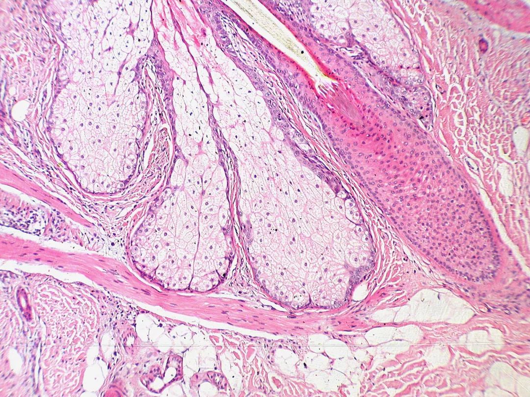 还是没印象?看看这张苏木精-伊红染色的切片,不知道会不会稍微唤起一点你的回忆。