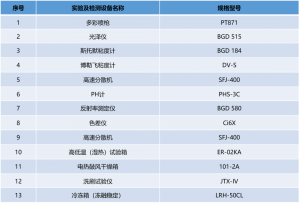 2、1、主要试验仪器见表1: