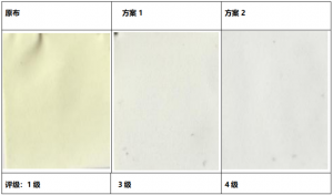 抗高温压膜黄变+抗酚醛黄变,双抗预防方案 黄变预防 锦纶白色面料 白色锦纶面料,在制作文胸时,需要经过高温压膜,在170℃以上高温下极易发生黄变。尤其在有海绵的垫衬下,黄变尤为严重。一直是令业界头疼的问...