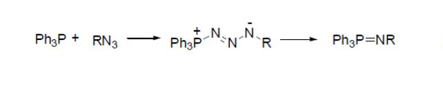 三基膦与有机叠氮化合物反应生成亚氨基膦烷 (式2)[2]。