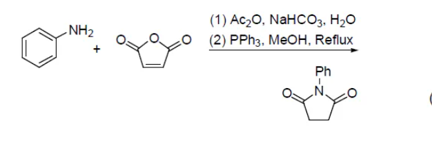 胺、呋喃二酮与三基膦反应生成1-基-2,5-吡咯二酮 (式7)[7]。