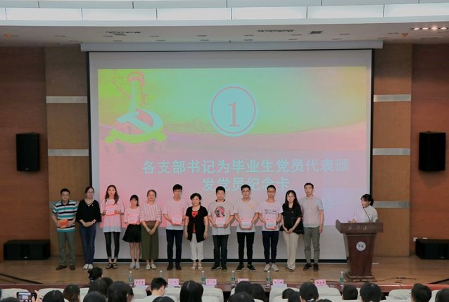 活动第一项,党支部书记为毕业生党员代表颁发党员纪念卡。纪念卡上记录了该党员的入党时间、入党介绍人等信息,勉励各位毕业生党员要时刻谨记自己的党员身份,在今后的学习和工作中继续发光发热。