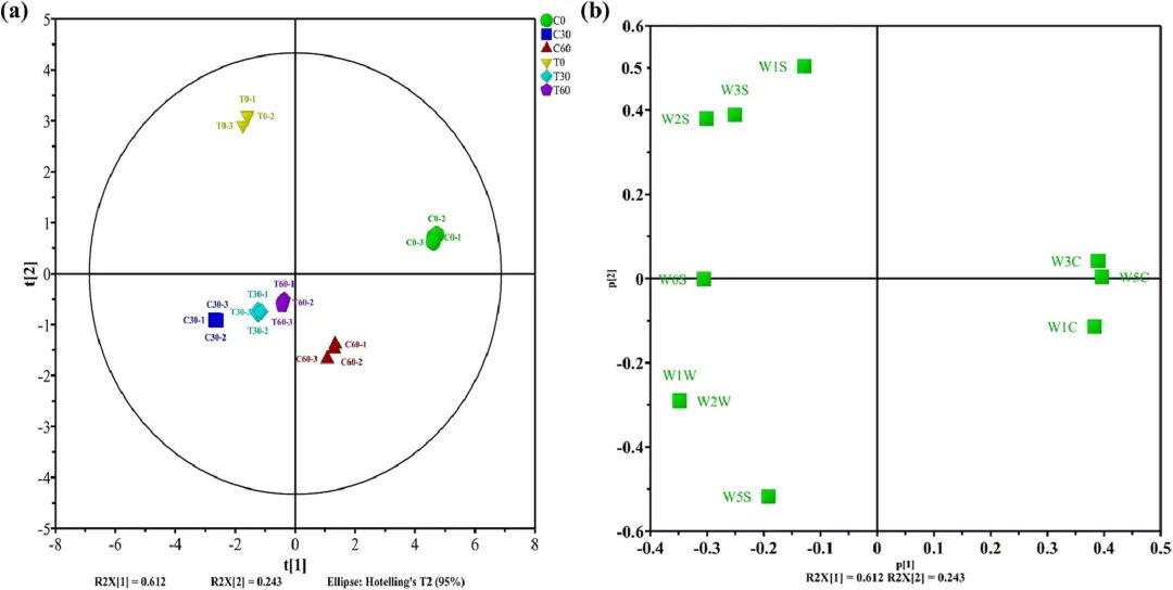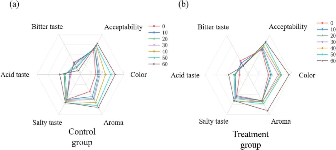本文采用综合二维气相色谱-质谱联用技术(GC×GC-MS)和非靶向代谢组学方法,研究了替代盐腌制熏肉与传统熏肉在贮藏过程中主要挥发性风味物质的差异。GC×GC-MS分析结果显示,在两种熏肉的146种挥发性化合物中,醇类、醛类、酮类、酚类和烯烃类含量最多。此外,非靶向代谢组学研究表明,氨基酸的变化和脂质氧化降解可能是两种熏肉风味差异的主要原因。随着贮藏时间的延长,两种熏肉的可接受度得分均呈上升趋势,说明贮藏过程中物质的代谢对熏肉的整体品质有显著影响。在适当的储存条件下,用22%的氯化钾和11%的抗坏血酸钙代替部分氯化钠,可以提高熏肉的品质。