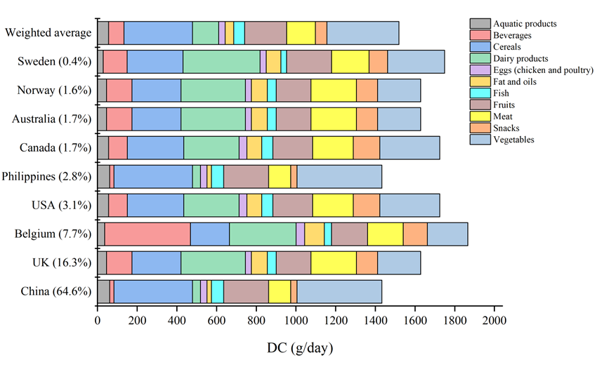 Fig. 3. Calculate the globally applicable average daily food consumption DC through weighted averaging.
