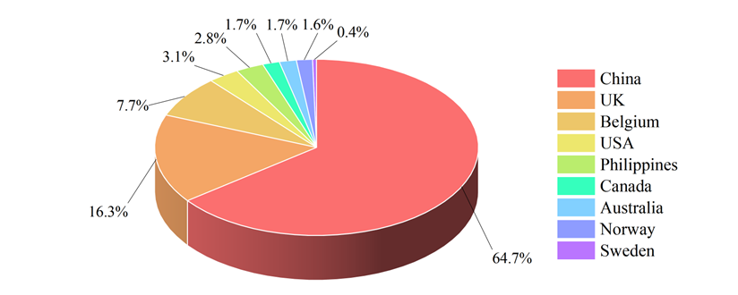 Fig. 4. The portion of different national sources included in the meta-analysis.