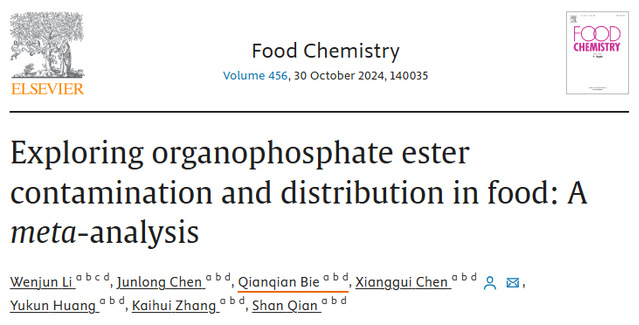 近日,365电子娱乐官方网站 “食品营养与安全”团队陈祥贵教授课题组在食品国际Top期刊Food Chemistry(Q1,IF: 8.5)发表题为“Exploring organophosphate ester contamination and distribution in food: A meta-analysis”的研究论文。食品与生物工程学院讲师李文君博士为论文的第一作者,食品与生物工程学院2022级研究生陈俊龙为该论文第二作者,食品与生物工程学院陈祥贵教授为通讯作者。