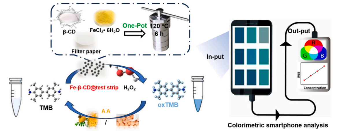近日,食品与生物工程学院青年教师李军博士在食品国际Top期刊Food Chemistry(Q1,IF: 8.5)发表题为“One-pot synthesis smartphone-assisted test strip based on food-grade Fe-β-Cyclodextrin nanozymes for rapid colorimetric analysis of ascorbic acid in foods and supplements”的研究论文。李军博士为该论文的第一作者及通讯作者,王楠博士和唐洁教授为共同通讯作者,四川大学张杰副研究员为论文的共同第一作者,西华大学为第一通讯单位,余孝其教授等老师为本研究工作提供了重要指导和帮助。
