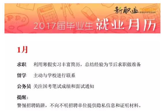 2017年,你准备好了吗?2017年就业月历帮你做好时间规划,有计划地行动起来!愿新的一年,都有理想的收获!