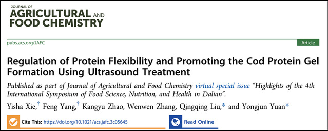 近期,食品与生物工程学院袁永俊教授、刘庆庆副教授、谢伊莎副教授研究团队在Journal of Agricultural and Food Chemistry、Ultrasonics Sonochemistry、Food Research International 等国际TOP期刊上针对超声调控蛋白凝胶与机制研究等发表多篇高水平研究型论文。