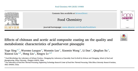 近日,食品与生物工程学院“农产品贮藏与加工”团队在农林科学领域国际顶尖期刊《Food Chemistry》(Q1, IF:8.5)发表题为“Effects of chitosan and acetic acid composite coating on the quality and metabolomic characteristics of postharvest pineapple”的论文。在专注于食品科学与生物加工技术领域的国际权威学术期刊《Food and Bioprocess Technology》(Q2,IF:5.3)发表题目为“Physiological Effects of CTS-TiO2-Ag Nanocomposite Coatings Induced by Ultraviolet Light Against C. gloeosporioides”的论文。