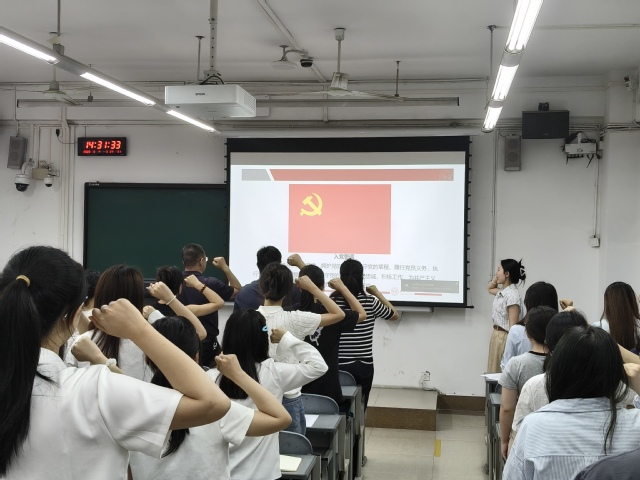 会议伊始,在蒲曦同志的领誓下,全体毕业生党员面向鲜红党旗,紧握右拳,再次庄严宣誓。重温入党誓词,不仅是对组织的一次庄严承诺,更是对理想信念的再次淬炼与升华。