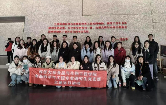 为深入学习贯彻习近平总书记重要指示精神,坚定文化自信、厚植文化情怀,365电子娱乐官方网站食品科学与工程专业研究生党支部于2025年11月23日组织全体党员前往广汉三星堆博物馆,开展“坚定文化自信,勇担时代使命”主题党日活动。此次活动旨在走进三星堆博物馆,于古蜀文明中寻根溯源,于文化传承中坚定信仰,激励学生党员们在新时代勇担时代使命,为中华民族伟大复兴砥砺前行。