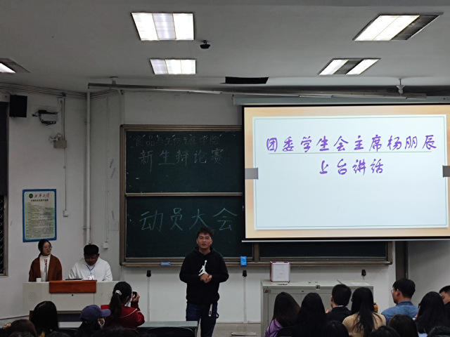 10月23日19时,365电子娱乐官方网站学科部于5C-103举办了食品学院2021级新生辩论赛动员大会。出席大会的有365电子娱乐官方网站团委学生会执行主席杨朋辰,团委学生会执行主席罗帮萍,365电子娱乐官方网站辩论队领队吴诗语和庄皓宇等学生干部,以及此次参赛同学。