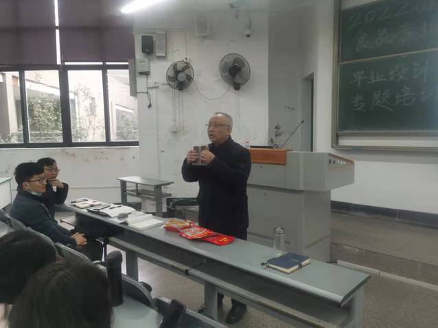 12月31日,我院食品工程系在6B201开展了2022届本科生毕业设计专题培训,邀请了我院兼职教授—四川省食品发酵工业研究院高级工程师曾泽生来校指导食品工厂设计培训。曾泽生高级工程师从事食品技术研究、食品工厂设计36年,长期为各种食品企业提供技术服务,在食品工厂设计方面具有丰富的实战经验。曾老师将晦涩难懂的工厂设计用深入浅出的语言和生动详实的案例进行讲解,如工艺设计应遵循的标准和规范、总平面图设计的要求、建筑密度容积率等知识点,声情并茂,激发了老师和学生兴趣,受益匪浅。相信通过这次培训,学生们一定受益良多,能有效提升食品专业毕业设计(论文)水平。