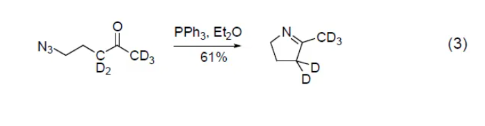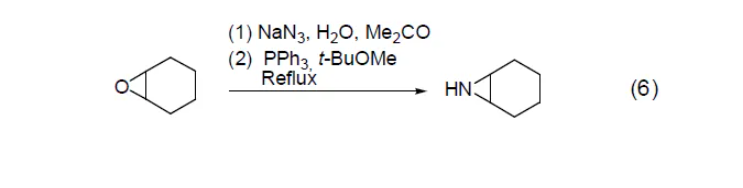 在水和丙酮溶剂中回流,三基膦可以使环氧化合物在叠氮化钠参与下转化为环亚胺 (式6)[6]。