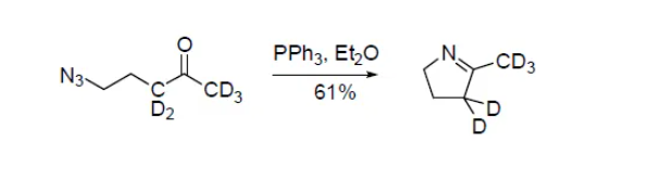 在水和丙酮溶剂中回流,三基膦可以使环氧化合物在叠氮化钠参与下转化为环亚胺 (式6)[6]。