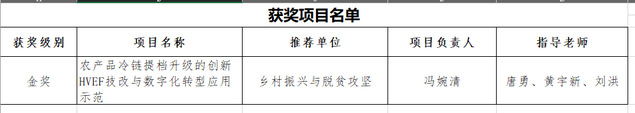 日前,2022年“挑战杯”四川省大学生创业计划竞赛成绩公布,我院唐勇教授指导的作品《博试冷链HVEF数字化系统——冷链农产品质量安全提档升级和数字化转型利器》获得乡村振兴和农业农村现代化项目组金奖。