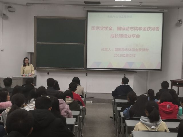 分享会上,学院国家奖学金获得者,2016级食品科学与工程专业邓海霞、国家励志奖学金获得者,2015级食品科学与工程专业周文婷、2016级生物工程专业刘福丽3名同学作了发言,内容丰富、具体、详实,语言朴实、精炼。他们结合自己的成长经历、学习经验、实践创新和人生感悟,从学习目标、学习方法、能力培养和职业规划等方面,讲述着自己的生活态度和人生追求,展示了当代大学生的良好形象。