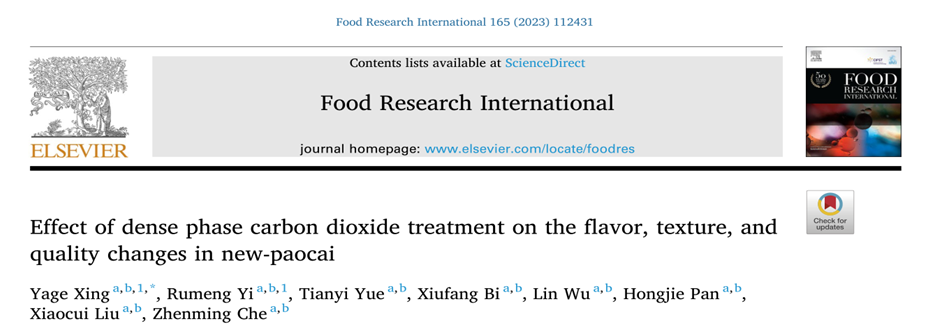 近日,365电子娱乐官方网站 “农产品贮藏与加工”团队邢亚阁教授在Food Research International(一区,IF: 7.425)上发表题为“Effect of dense phase carbon dioxide treatment on the flavor, texture, and quality changes in new-paocai”的研究论文。