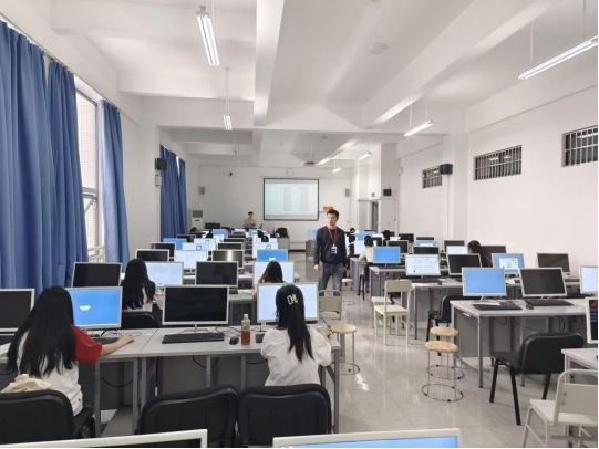 考试开始前30分钟各队伍参赛人员依次进场进行签到,监考人员进行了分发草稿纸,组织参赛人员间隔坐下,帮助登录校园办公网,输入网址等赛前准备工作。12时30分,各参赛人员进入网站开始正式答题,在考试期间,巡视人员和监考人员维护考试纪律并填写了竞赛选拔考试记录表,下午两点考试正式结束,各考生依次退场,监考人员整理考场卫生,关闭计算机。
