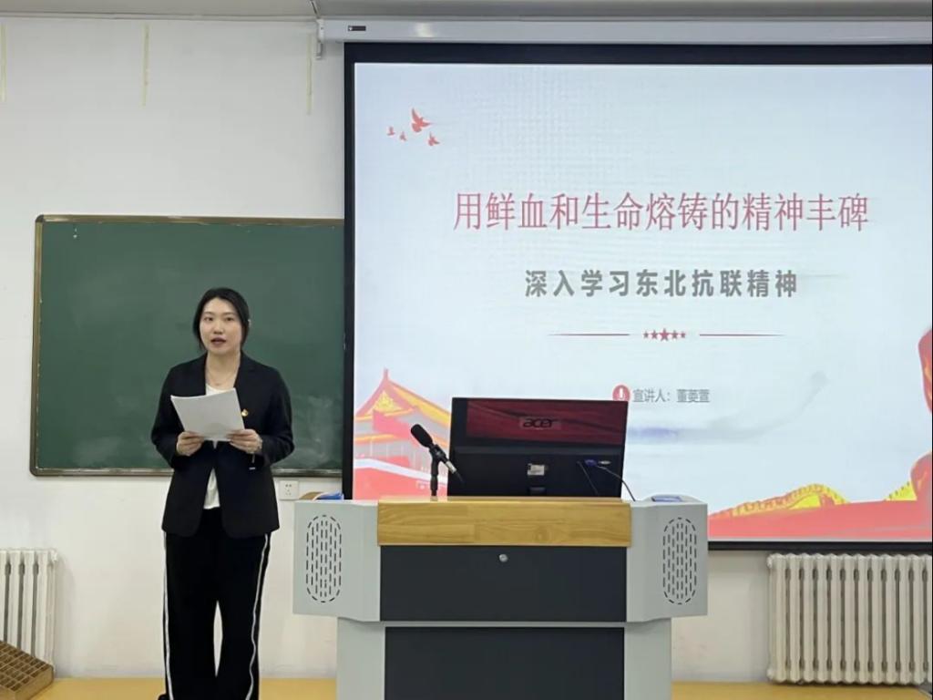 为深入学习贯彻东北抗联精神,食品工程学院于2024年4月12日在食品楼317开展了校级“青马工程”学生骨干领学活动,宣讲人董菱萱带领“青马工程”学员就东北抗联精神展开深入详细的理论学习。