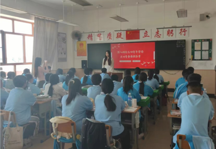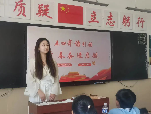 青春孕育无限希望,青年创造美好明天。通过学习习近平总书记五四青年节对全国广大青年寄语精神,实践队负责人冯冰清以“五四寄语,青春共鸣—畅谈理想与担当”为主题与学生展开交流分享。她表明:“五四精神中的爱国情怀,是我们内心深处最炽热的火焰。在国家需要的时候,将挺身而出,为国家的繁荣昌盛贡献自己的力量。