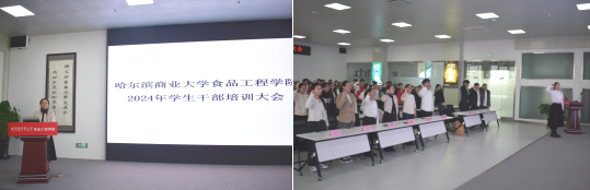 参观完飞鹤智能产业园,食品工程学院在会议室召开了2024年学生干部培训大会,此次培训大会共四项议程。