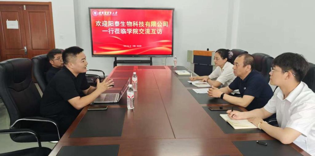 6月18日下午,阳泰(黑龙江)生物科技有限公司总经理张杨泰一行莅临食品工程学院,在东实验楼322会议室开展合作交流。学院党委书记韩煦、副处级辅导员贺殷媛、学院团委书记李慧铭及2022级辅导员张旭东出席活动,双方围绕 “访企拓岗”专项行动,就人才培养、产学研融合及就业岗位拓展等方面展开深入交流合作。