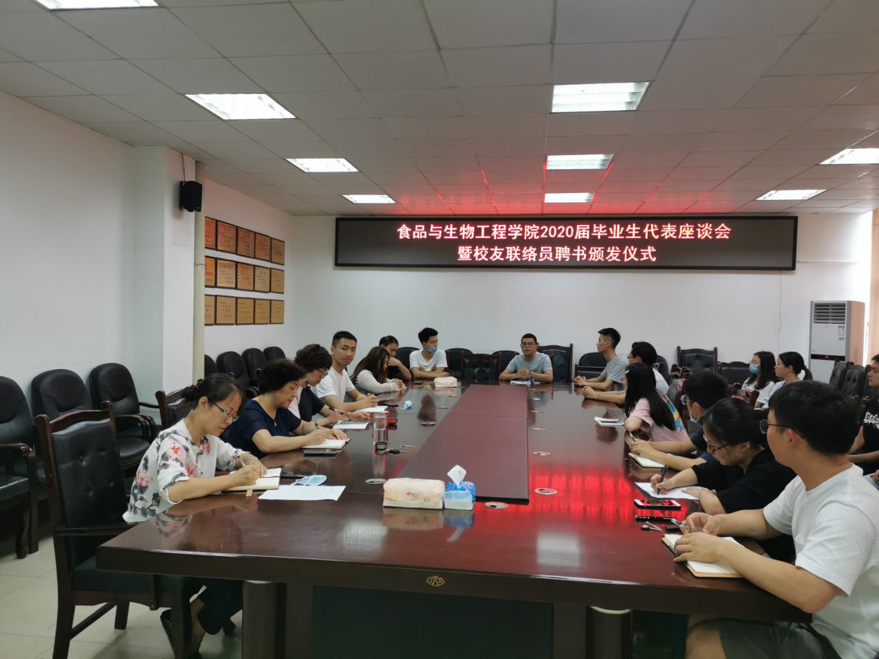 为进一步提升食品与生物工程学院学生教育管理服务水平,提高学院办学质量,了解2020届毕业生在大学期间对课程学习、实践培训、人才培养、校园生活等方面的想法,为学院的教学、管理和服务等方面发展建言献策,学院于6月17日下午在学院会议室召开了毕业生代表座谈会。学院党委书记周彬儒、党委副书记李鹤、食品系主任马嫄、学工办全体辅导员以及部分毕业生代表参加会议,会议由学工办王雁老师主持。