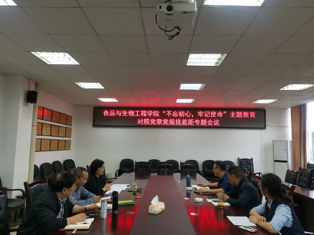 10月23日下午,食品与生物工程学院在学院会议室5D-419召开“不忘初心、牢记使命”主题教育对照党章党规找差距专题会议。学院领导班子全体成员参加会议,会议由学院党委书记周彬儒主持。